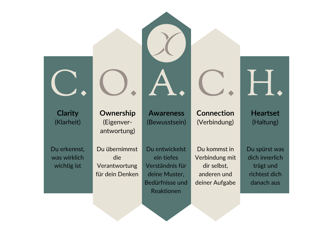Nicht das nächste Toolset. Kein starres System. C.O.A.C.H. ist eine innere Haltung. Ein Weg, dich selbst (wieder) klarer zu sehen, Verantwortung zu übernehmen, bewusster zu leben – und aus dem Herzen zu führen. Denn oft ist es nicht die Antwort, die uns weiterbringt – sondern die Frage, die etwas in uns bewegt.